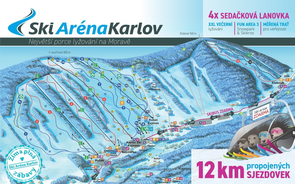 Stejně jako v zimě, jsou v provozu dva areály, kde si užijete zábavu především na kole v místních bikeparcích.